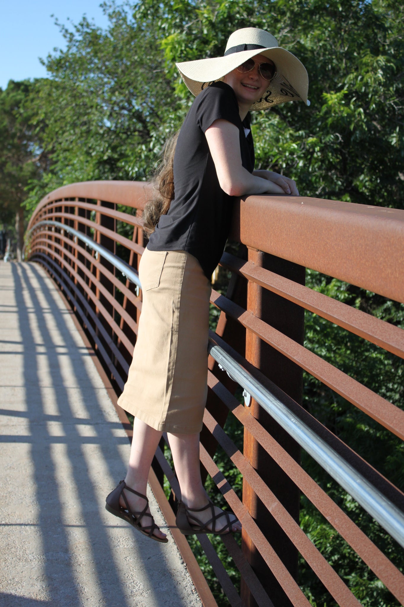 The Savannah Skirt in Khaki is a stylish way to stay comfortable and chic. Crafted from a breathable stretch fabric, this midi skirt features pockets, a functional zipper and button closer, and comes in a flattering khaki color. No slits mean you can move around worry-free. Size up for a loser fit.
